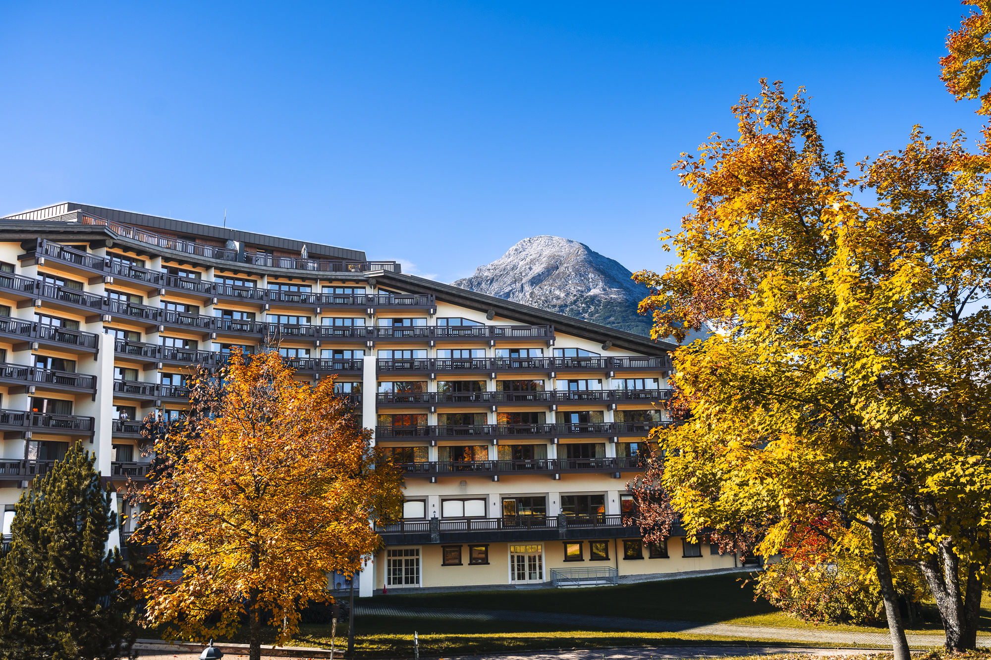 - Das Interalpen-Hotel Tyrol auf 1.300 m Seehöhe. Foto: SpaCamp/Lukas Geu